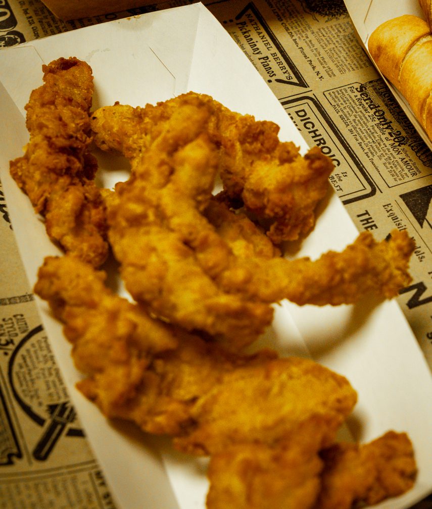 de corral, con salsas (mayosiracha y miel/mostaza)