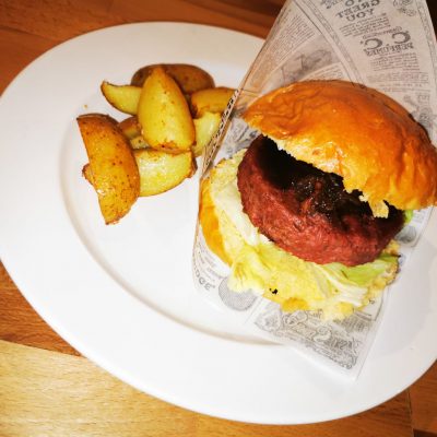 Price: 12€ Menu: Burguer´s, Vegano Author: vapu (Imposible que sea vegana). La acompañamos de mézclum, cebolla caramelizada y salsa barbacoa.
