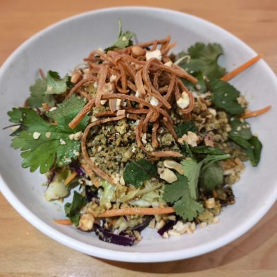 De pollo, vinagreta oriental y mix de lechuga tricolor