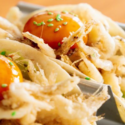 Price: 5€/un. Menu: A compartir... o no, Zarpamos Author: vapu con guacamole y yema de huevo curada en soja. MINIMO 2UDs.