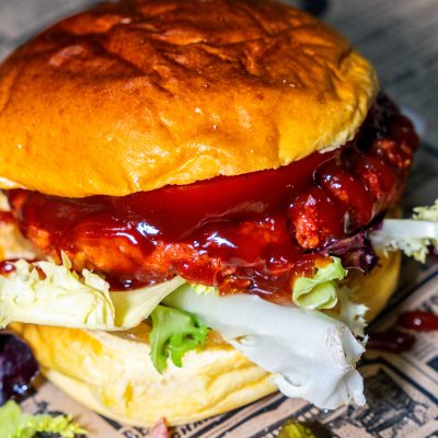 Price: 10 Menu: Burgers Author: vapu Pan brioche casero, burguer vegetal, lechuga, tomate, cebolla caramelizada y salsa barbacoa